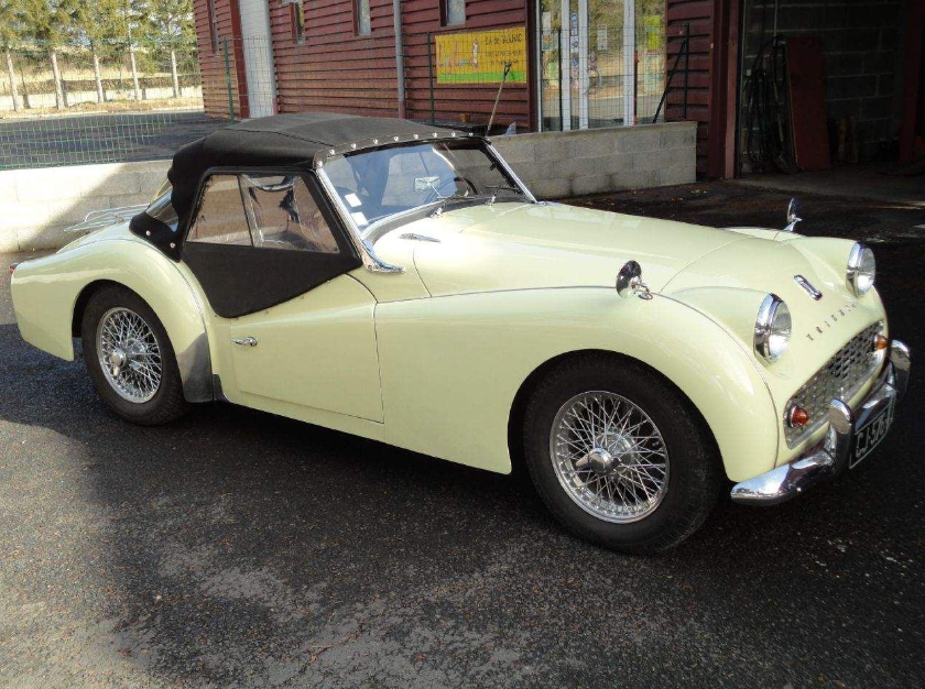 TR4A IRS de 1966. Restaurée en 2018. Bel exemplaire, très bon état mécanique, allumage électronique, servofrein, ligne d’échappement inox, roulements arrières, amortisseurs, réservoir d’essence, montage d’un ventilateur additionnel, pompe essence