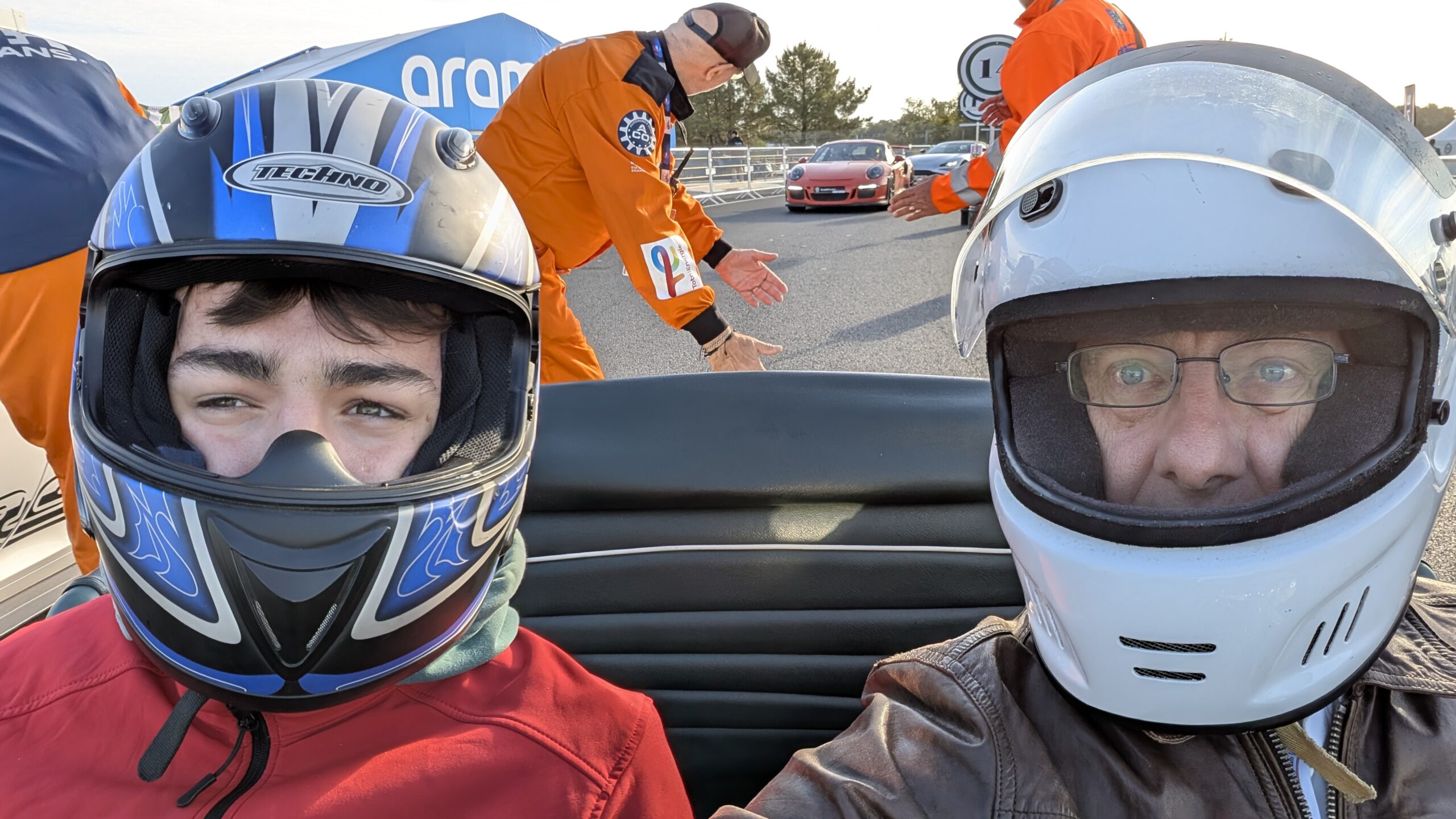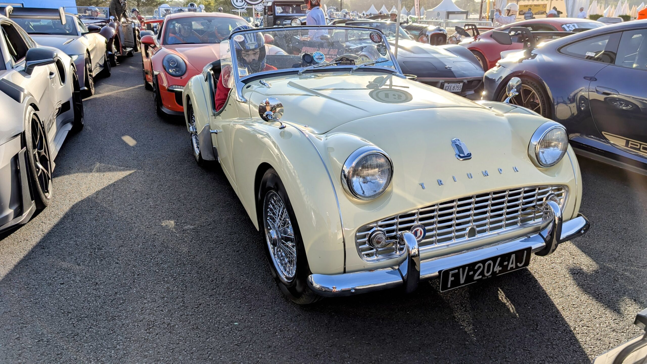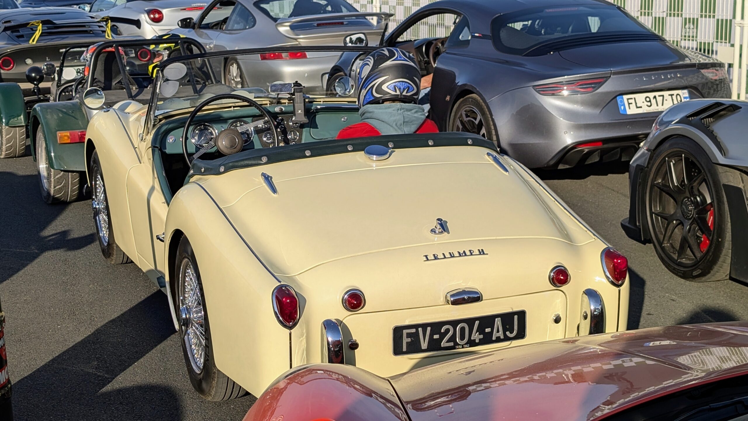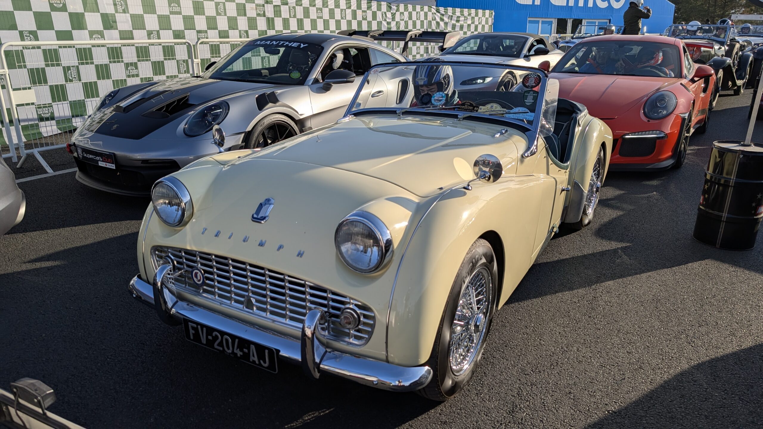 Un moment fort pour le club, Didier Longin, notre animateur régional, a eu l’opportunité de piloter sa TR3 sur le circuit mythique lors d’un roulage de 2 tours.