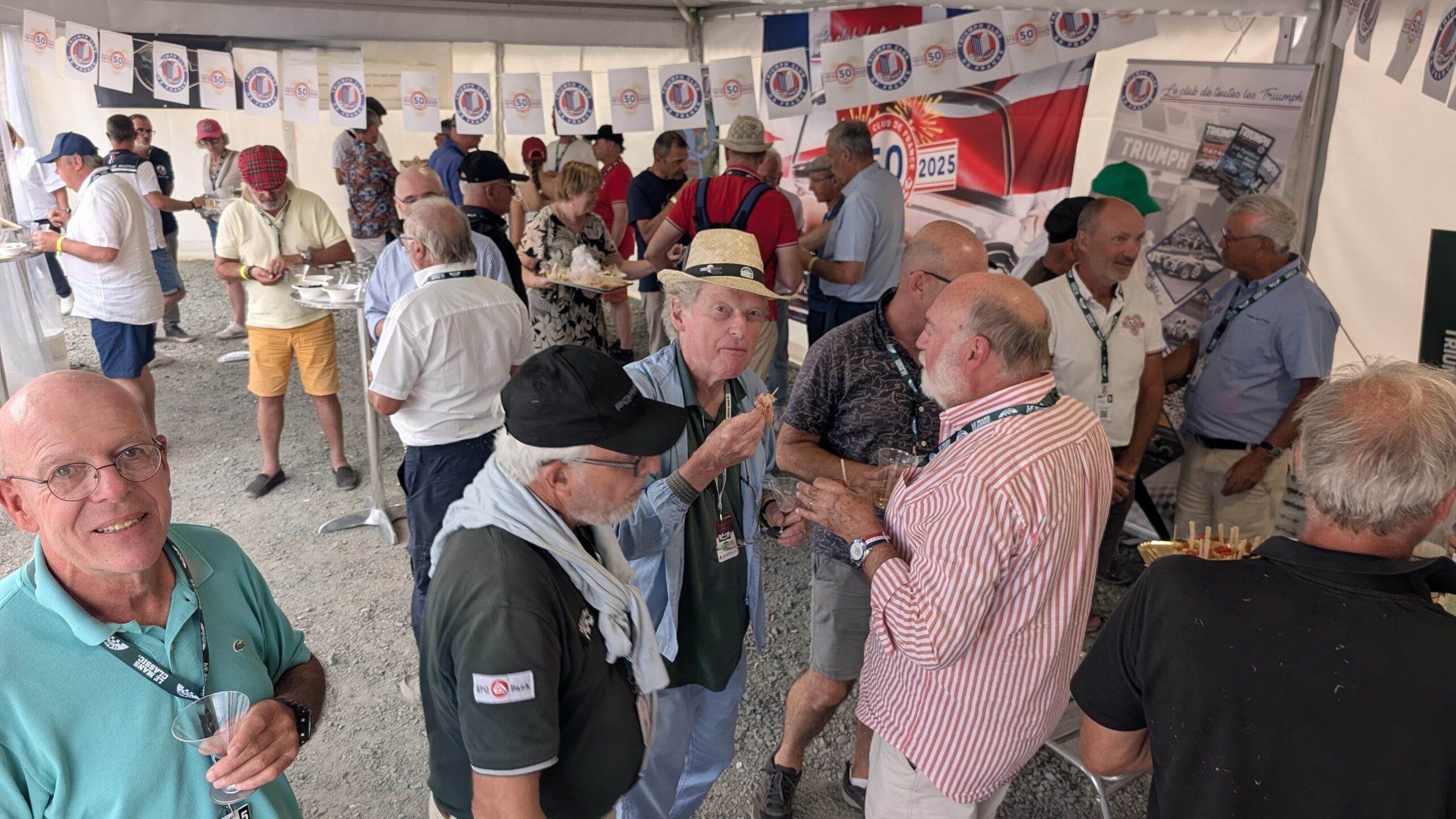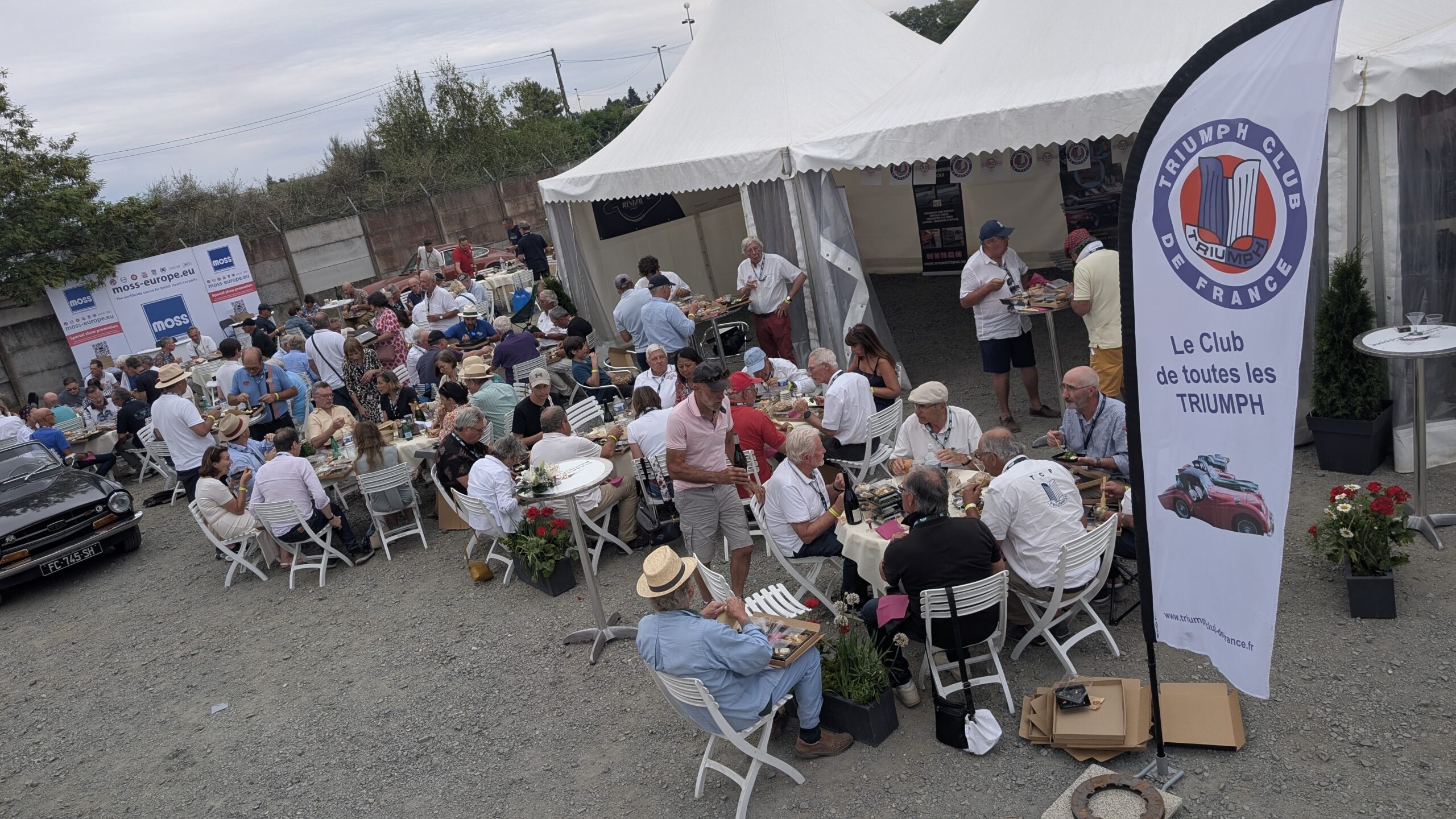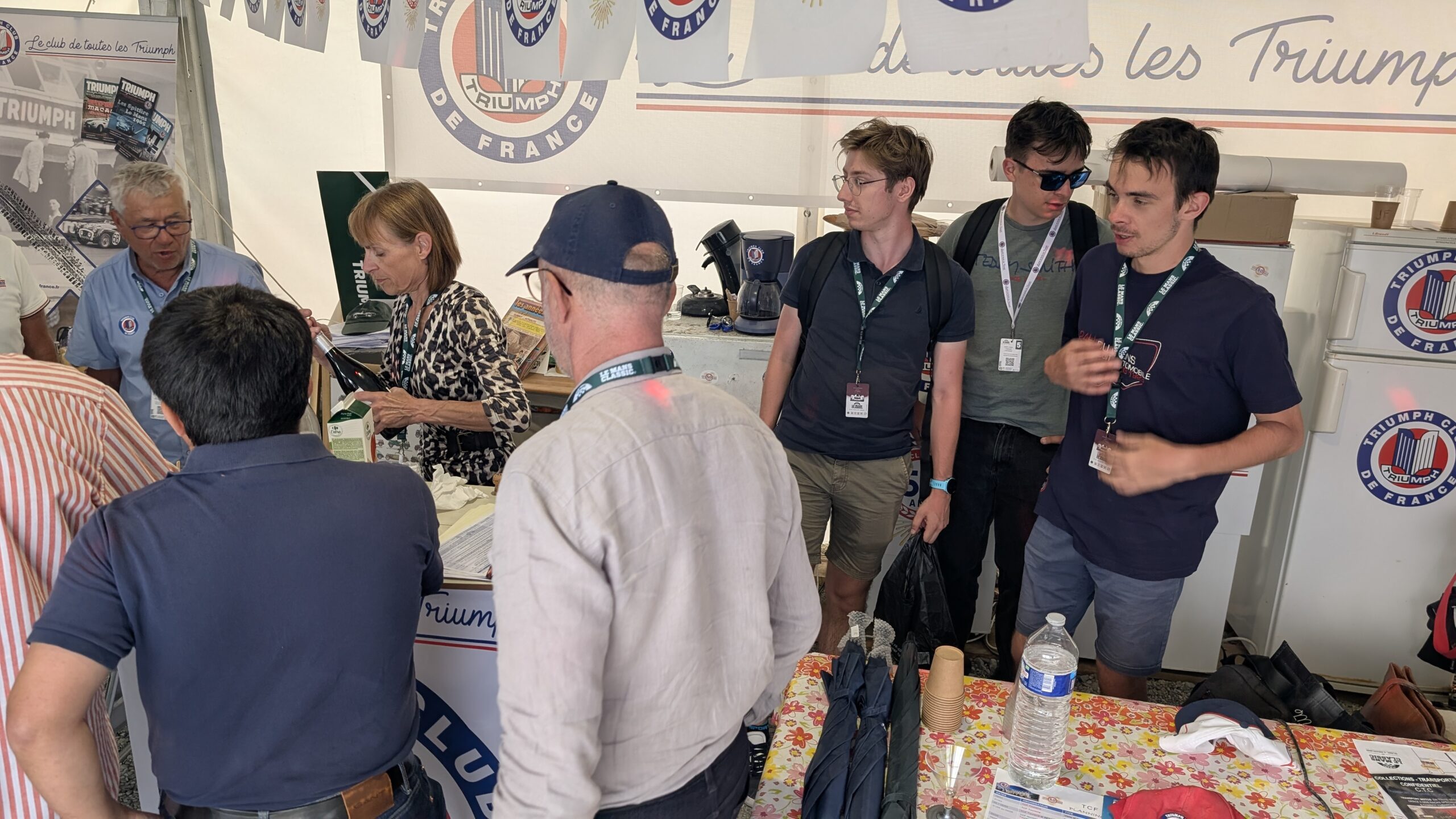 Le Triumph Club de France a assuré une présence remarquée lors de l’événement avec un parking de 90 places dédiées, juste en face du pont Dunlop et exclusivement réservé aux véhicules du club. Un chapiteau de 75 m², lieu d’échanges et de rencontres, a permis à nos hôtesses d’accueillir les membres et les visiteurs tout en proposant boissons rafraîchissantes et collation.