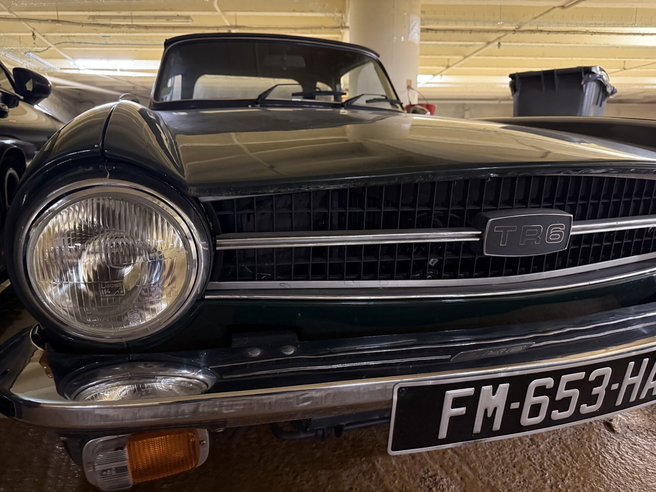 Vends TR6 1975 Vert Foncé cause retraite Très bel état Peinture-Double carburateur Weber chromés-Très belles accélérations-Allumage electronique-Volant Bois-Echappement Inox-Porte-bagage Inox-Couvre-capote-Tapis de sol Entretenu par spécialiste- toujours garé à l’intérieur-Factures freins