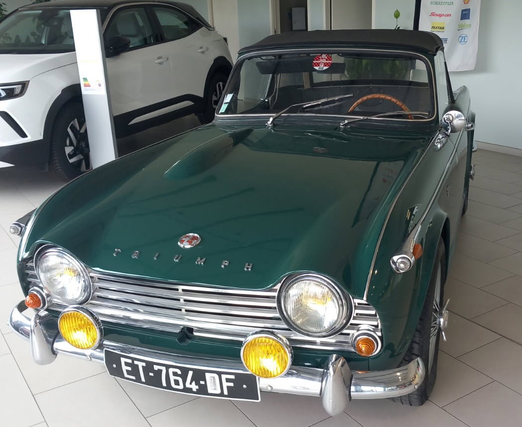 Vends Cabriolet TR6 1975- Très belle peinture Vert Anglais-2 Carburateurs Weber-Boite manuelle-Freins et carburation révisés-Contrôle technique positif-Garée à l’intérieur et entretenu par garage expert-Factures- Volant bois, Allumage électronique, Coupe-batterie, Porte-bagage,