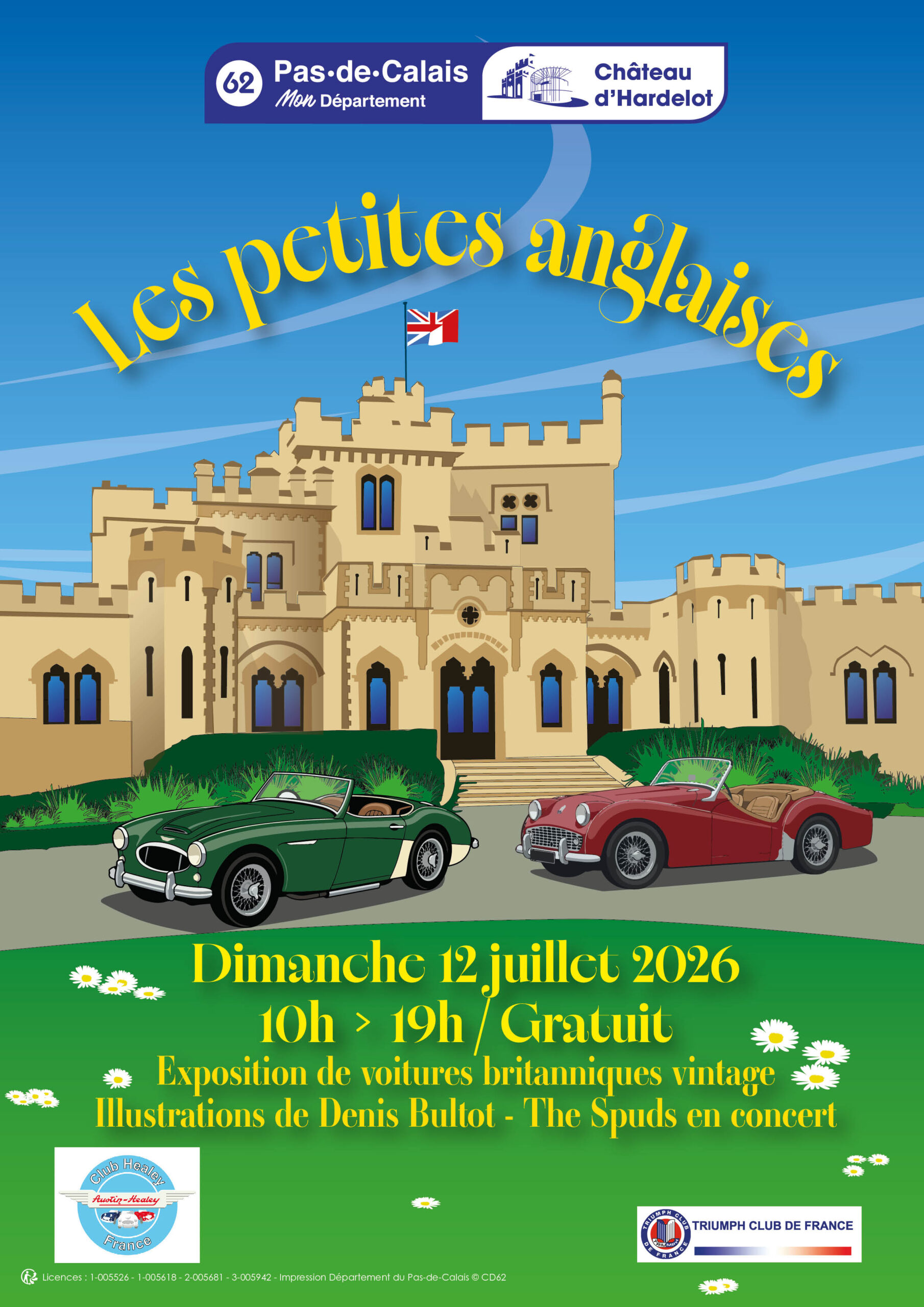 Exposition statique de véhicules anglais d'avant 1980 Organisateurs : Château d'Hardelot et Entente Cordiale Régionale Contact TCF : Christophe MAGUIN Tél : 07 81 65 96 06 - Email : hauts-de-france@triumph-club-de-france.fr